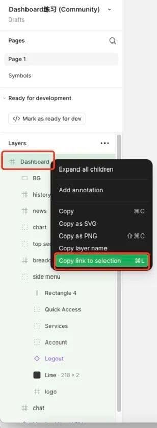 很简单,只需要将组件选中,右键复制链接,这里我们直接拿所有的组件生成链接: